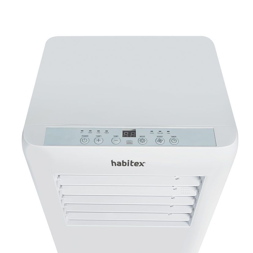 Aire Acondicionado Portátil HABITEX AC7000 Climatiza tu espacio con eficiencia y comodidad El HABITEX AC7000 es la solución ideal para mantener tu hogar fresco y confortable durante los días más calurosos. Con 3 funciones en un solo equipo —aire frío, deshumidificador y ventilador—, se adapta a tus necesidades en cada momento. Dispone de 2 velocidades, oscilación horizontal para una distribución uniforme del aire y temporizador de 24 horas para un control total del ambiente. Incluye mando a distancia, indicador de depósito lleno, kit de ventana y tubo de extracción (ø 15,4 cm, 150 cm de largo) para una instalación sencilla. Compacto, práctico y eficiente, es perfecto para climatizar cualquier estancia sin complicaciones.