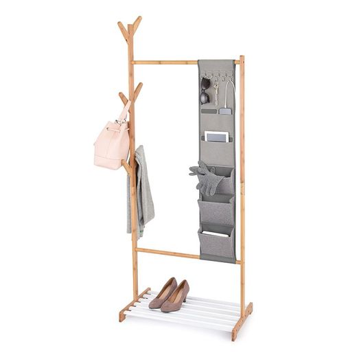 Embellece tu hogar y organiza tu entrada con el elegante perchero multiuso modelo Bambú. Fabricado con madera de bambú de alta calidad, este perchero no solo ofrece funcionalidad, sino también un toque de estilo natural a tu espacio. Con una repisa para zapatos en plástico blanco, modelo 1, este perchero no solo mantiene tus abrigos y accesorios organizados, sino que también proporciona un espacio práctico para guardar tus zapatos. Sus dimensiones de 65x38xh.167 cm lo convierten en una adición perfecta para espacios reducidos, como pasillos o vestíbulos. Además, este perchero viene completo con un organizador multiuso en poliéster gris, agregando un toque adicional de funcionalidad y versatilidad. Con su diseño de moda y actual, este perchero complementará perfectamente cualquier estilo de decoración interior. Dale a tu hogar un toque de elegancia y orden con el perchero multiuso modelo Bambú, una opción moderna y práctica para mantener tu entrada organizada y con estilo.