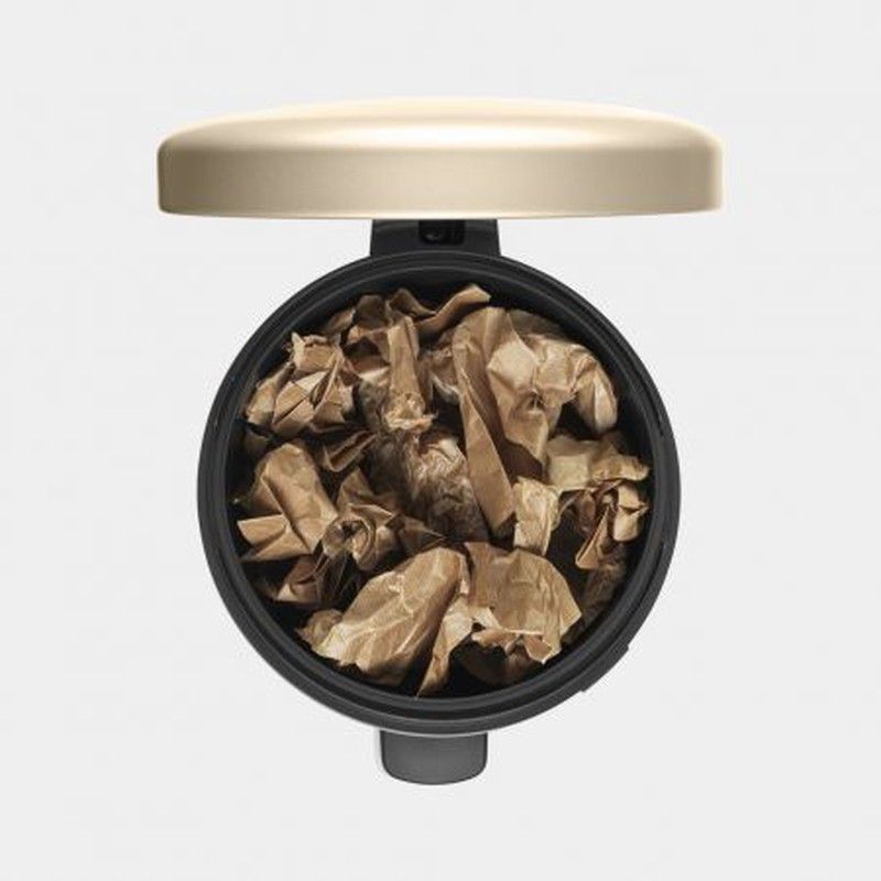 El Cubo De Pedal Newicon De Brabantia Tiene Un Diseño Icónico Que Se Siente Bien En Cualquier Área Del Hogar, Tiene Un Atractivo Color dorado metálico Y Capacidad De 20 Litros. Es Muy Fácil De Abrir, Con Tan Solo Un Toque Del Pie, Se Cierra De Manera Hermética Manteniendo A Raya Los Olores.