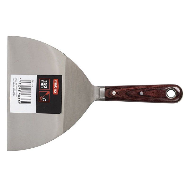 Espátula de Pintor RATIO Acero Inoxidable Herramienta imprescindible para cualquier trabajo de pintura, restauración o bricolaje. Diseñada con una hoja de acero inoxidable flexible y pasante hasta el mango, garantiza resistencia, durabilidad y precisión en cada aplicación. Su espesor de 1,5 ~ 0,5 mm permite un manejo versátil, ideal para extender masillas, alisar superficies o raspar pintura vieja sin esfuerzo. El mango de madera de 105 mm, ergonómico y de tacto cómodo, proporciona un agarre firme para un control total en el trabajo. Perfecta tanto para profesionales como para aficionados al bricolaje, esta espátula combina calidad y funcionalidad para lograr acabados impecables en cualquier proyecto. ¡Un básico en tu caja de herramientas!