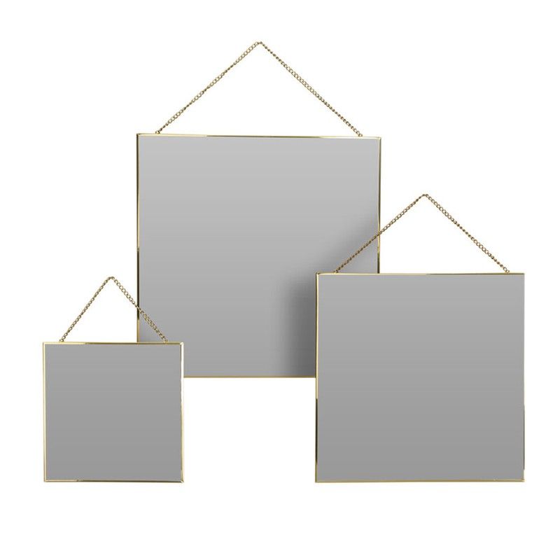 Espejo mural decorativo Square Espejos con marco dorado. Colgadores en cadena color dorado. Set 3 unidades.