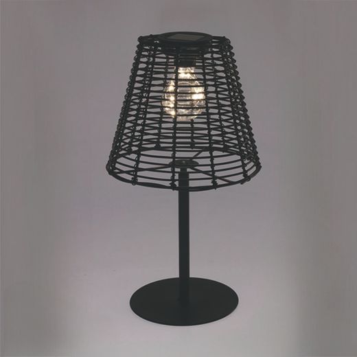 Lámpara solar recargable decorativa Ilumina tus espacios exteriores con estilo gracias a esta lámpara solar con elegante estructura de metal en color negro y pantalla decorativa. Incorpora un delicado detalle de enredadera que aporta un toque natural y acogedor. Funciona con energía solar e incluye batería recargable y reemplazable, ofreciendo una opción práctica y sostenible. Su diseño compacto (20 x 33 cm) la hace perfecta para crear ambientes cálidos en jardines, terrazas o balcones.