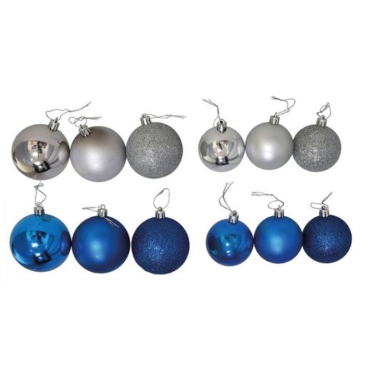 Juego de 24 bolas navidad ø 60 mm. Azul y plata.