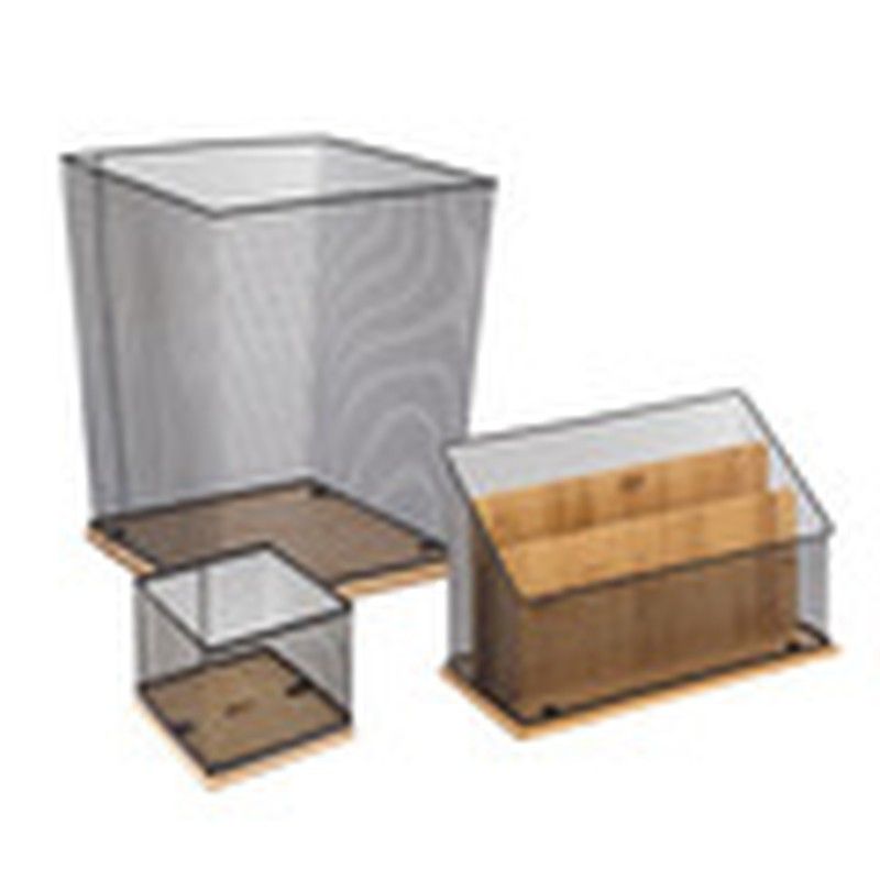 Papelera Havi: Estilo y funcionalidad para tu espacio de trabajo Mantén tu área de trabajo organizada y elegante con la Papelera Havi. Con dimensiones de 25,3x25,3xh.31 cm, esta papelera combina un diseño moderno y sofisticado, fabricado en metal negro y acentuado con cálida madera de bambú. Ideal para cualquier entorno, su estética minimalista complementa tanto oficinas como espacios en el hogar, mientras que su construcción robusta garantiza durabilidad y resistencia. La Papelera Havi no solo es funcional, sino que también aporta un toque de estilo a tu escritorio, ayudándote a mantener tu espacio limpio y ordenado. ¡Descubre la perfecta fusión de diseño y practicidad!