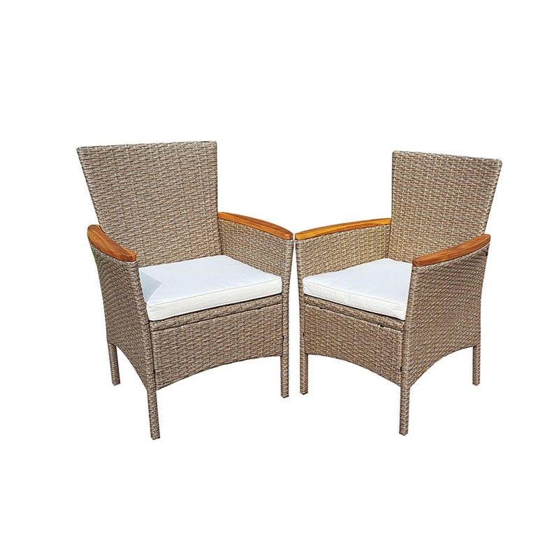Embellece tu espacio al aire libre con el conjunto de 2 sillones para el conjunto de jardín 5 piezas Tahití. Cada sillón, con dimensiones de 60x59xh.88 cm, está diseñado para brindar comodidad y estilo a tu patio, terraza o jardín. La estructura de acero combinada con ratán sintético garantiza durabilidad y resistencia a la intemperie, mientras que los cojines de poliéster añaden un toque de confort. Combinados con la mesa con tablero de madera de acacia, estos sillones crean un ambiente acogedor y elegante para disfrutar de momentos al aire libre con amigos y familiares. Añade un toque de sofisticación a tu espacio exterior con el conjunto de 2 sillones para el conjunto de jardín 5 piezas Tahití.