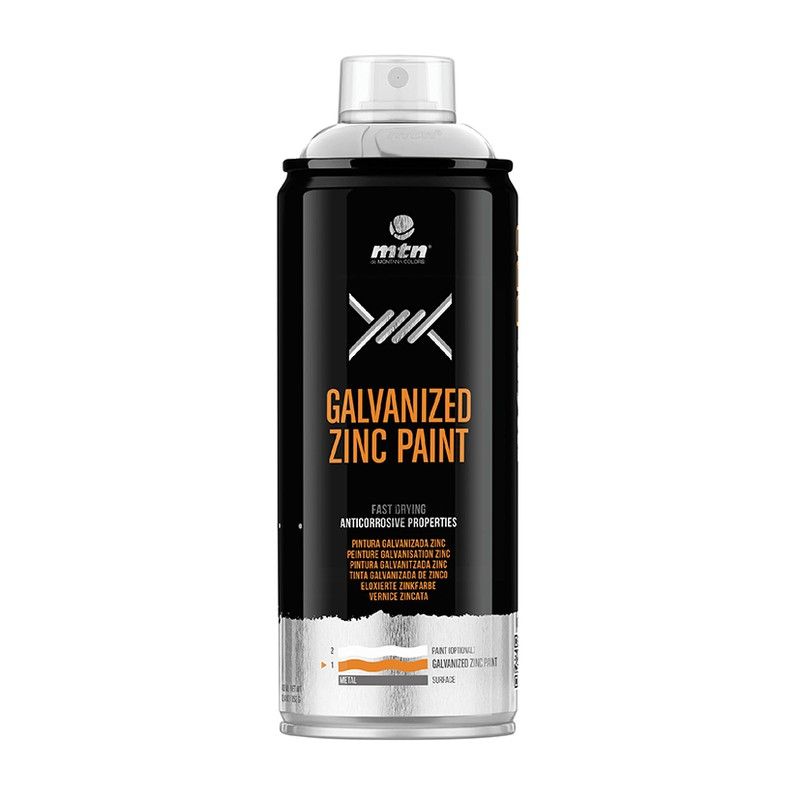 Pintura spray galvanizada MTN Para el pintado de maquinaria, así como estructuras de hierro que requieran una manipulación casi inmediata después de ser pintadas. Facilidad de aplicación y repintado. Para retoques de desperfectos en las piezas tratadas con sistemas galvánicos siendo protección en ambientes marinos e industriales. Excelente poder anticorrosivo. 400 ml.