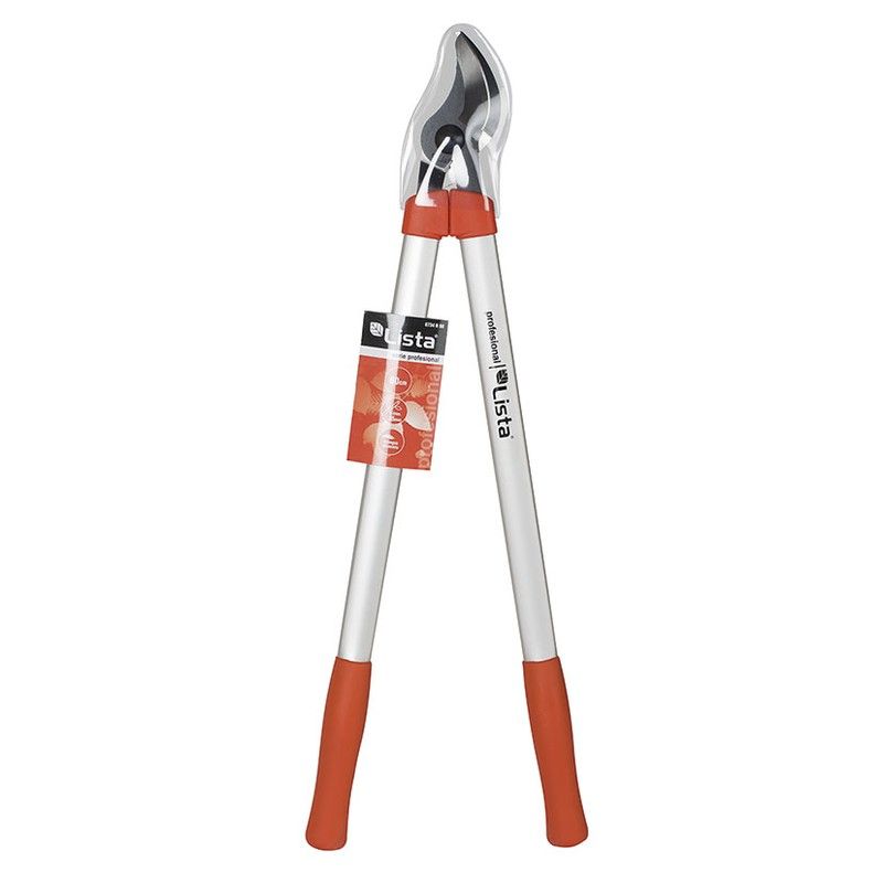 Tijera podadora profesional LISTA 6734 Corte deslizante tipo bypass para un rendimiento excepcional. Fabricada en acero cromo-vanadio con cuchilla rectificada, ideal para cortes precisos. Hoja intercambiable que asegura una larga vida útil y un ajuste personalizado mediante rosca fina y lengüeta de sujeción. Mangos de aluminio ligeros y duraderos, con puños redondos para un agarre óptimo y cómodo. Equipado con topes de elastollan para mayor suavidad en el uso. Capacidad de corte máxima de 35 mm. Longitud de 60 cm, perfecta para podas exigentes y de difícil acceso. ¡Mejora tu experiencia de jardinería con esta herramienta de alta calidad!